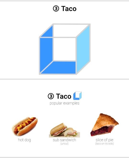 Davide Posted 17 hours ago Posted 17 hours ago (edited) 8 minutes ago, Jason Rimbaud said: Hot Dogs are not sandwiches. Prove me wrong! That and the pizza comment were bait for the sake of humour (although I do like pineapple on pizza). According to the cube rule, as seen on https://cuberule.com/, a hot dog is actually a taco because it's covered in three sides. Edited 17 hours ago by Davide 1 2