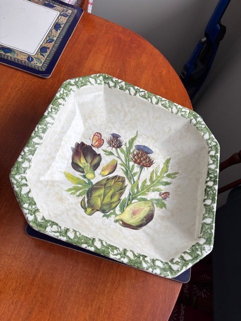 5. Love the beginnings of the table runner, but OMG that bowl. Perchance is it made in Italy? 🤔